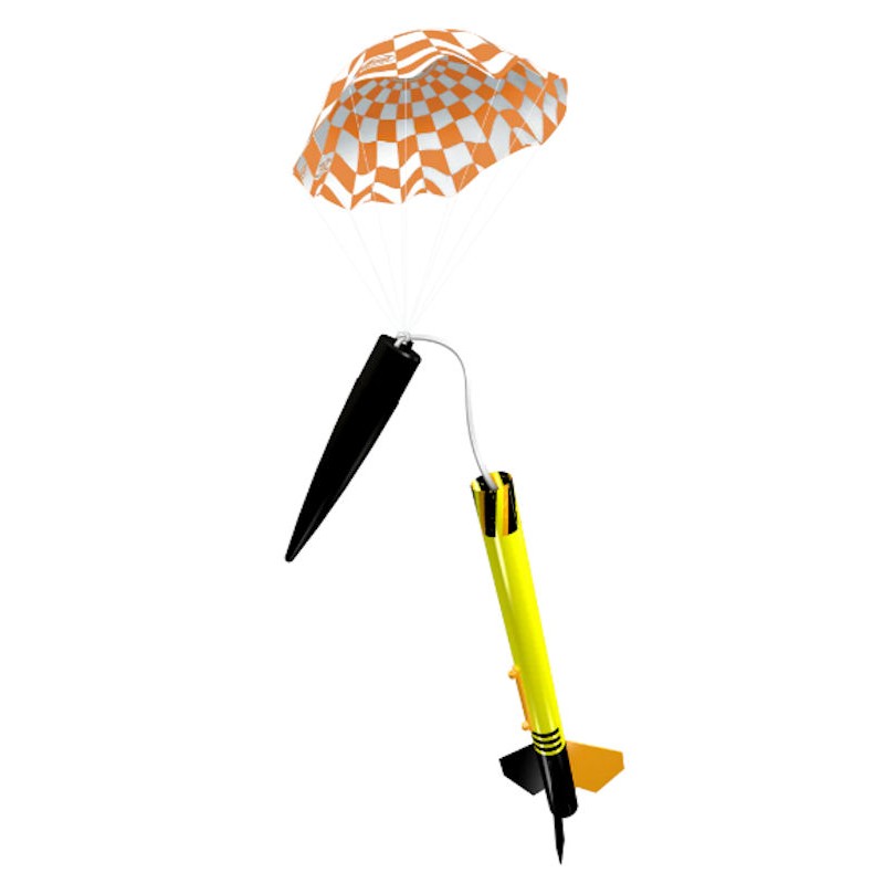 Built for both performance and safety, the Prospector features a smooth parachute recovery system that ensures a controlled descent and easy retrieval after each flight. The bright yellow and black design makes it visually striking, while its compatibility with Estes A8-3, B6-4, and C6-5 engines allows for customizable flight experiences.