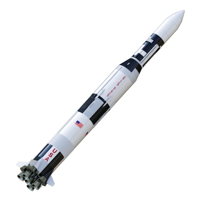 The Estes Saturn V Skylab is an accurate 1:100 scale reproduction of this historic rocket and its space station payload.  Vacuum formed tube wraps and fin fairings add a textured realism to this model's surface. Injection molded fins are both durable and detailed - a fin alignment guide is included for precise placement.  The detailed water-slide decals accurately represent the markings of this historic mission.  The Estes Saturn V Skylab can reach up to 400 feet on and Estes F15-4 engine.  At ejection, the rocket separates into two sections for recovery - the Saturn V first and second stages return together under dual 24 inch parachutes, while the Skylab upper section sports its own 18 inch canopy.