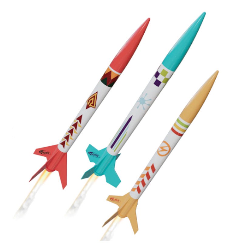Ignite a love for flight with the Estes Trailblazer Trio™—a three-pack of beginner-friendly rockets that make rocketry simple, safe, and unforgettable. Designed for first-time flyers, summer camps, scouting groups, STEM clubs, and family fun, each rocket in the set brings its own style to the skies while keeping assembly quick and easy.