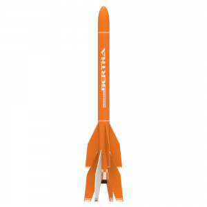 Quality Estes body tubes, laser cut wood fins, a molded plastic nose cone, and easy-to-apply waterslide decals make for a full day of building enjoyment. Once painted to perfection, this Bertha is a must-have for any rocket collector!