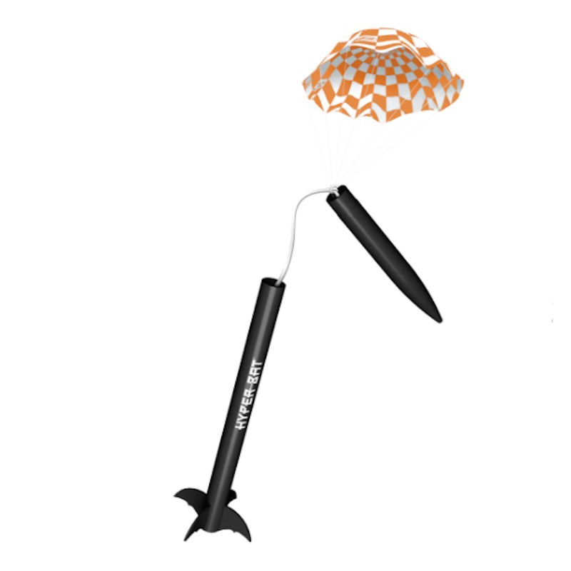 Fly it single stage for quick, clean launches or attach a booster to push it to an impressive 2,125 feet. Equipped with a 12 inch parachute for reliable recovery, the Hyper Bat™ is built for unforgettable flights and repeated thrills launch after launch.