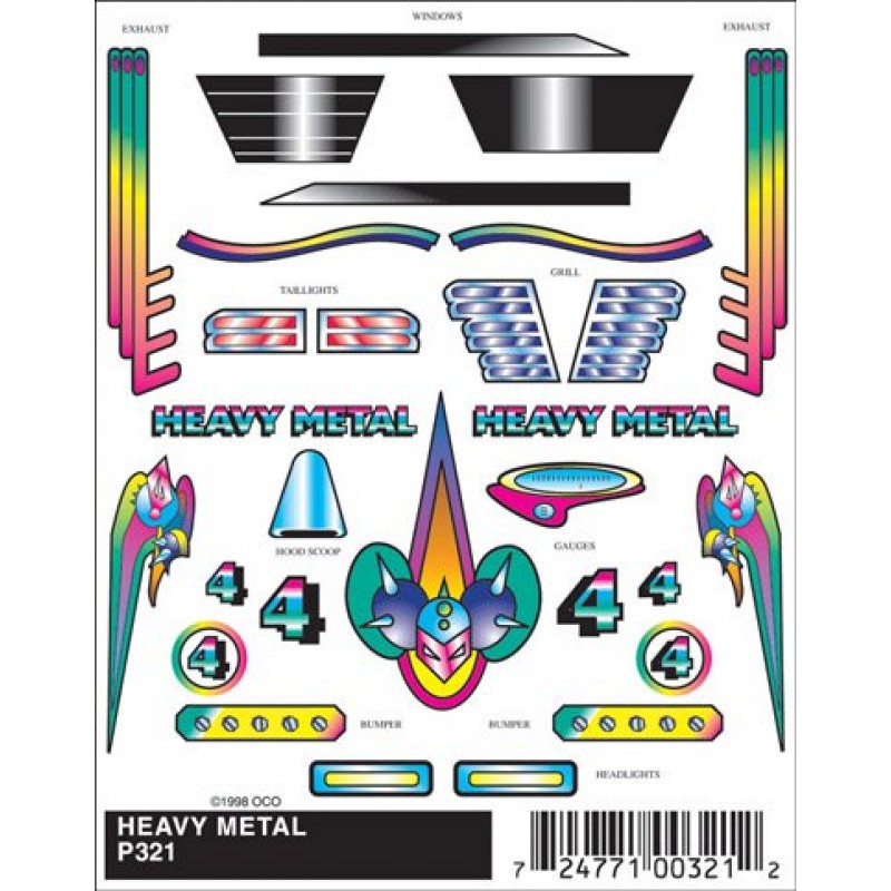 These colorful Heavy Metal  decals are high quality accessories that give your car or rocket the personalized look you want.  Used properly, they will not crack or chip!  Decal sheet is  4" x 5" and easy to apply!